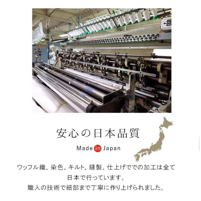 ワッフル織、染色、キルト、縫製、仕上げででの加工は全て