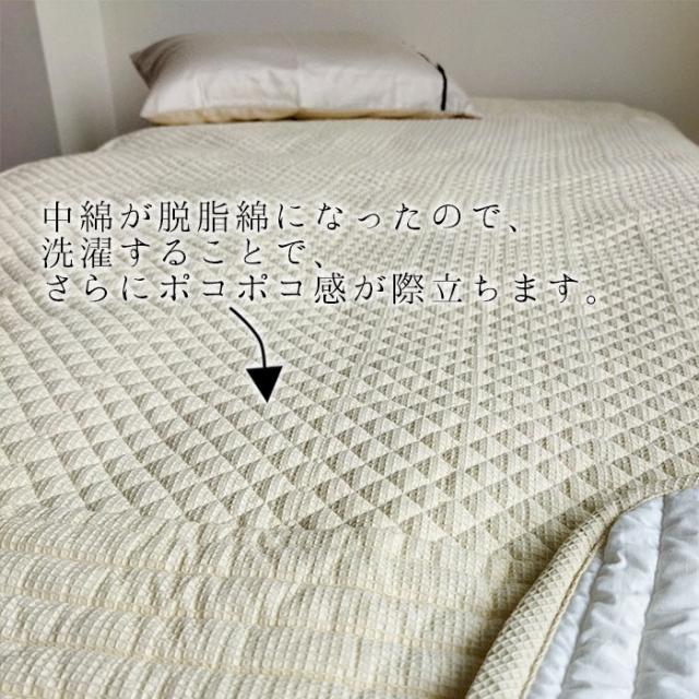 天然素材特有の自然の縮みにより、キルトの凹凸が新品時より