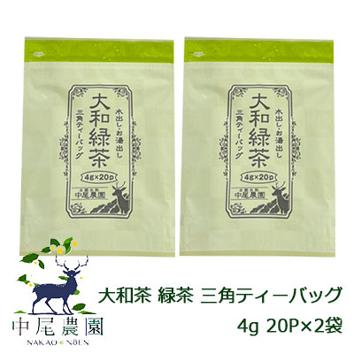 【郵送】中尾農園 奈良県田原産 大和茶 緑茶 三角 ティーバッグ 4g 20P ×2袋 送料無料 79609