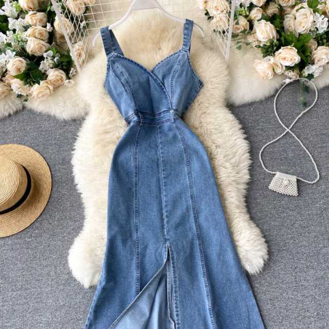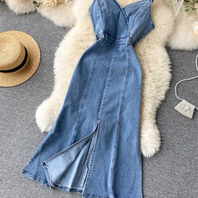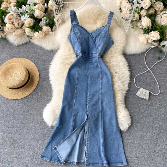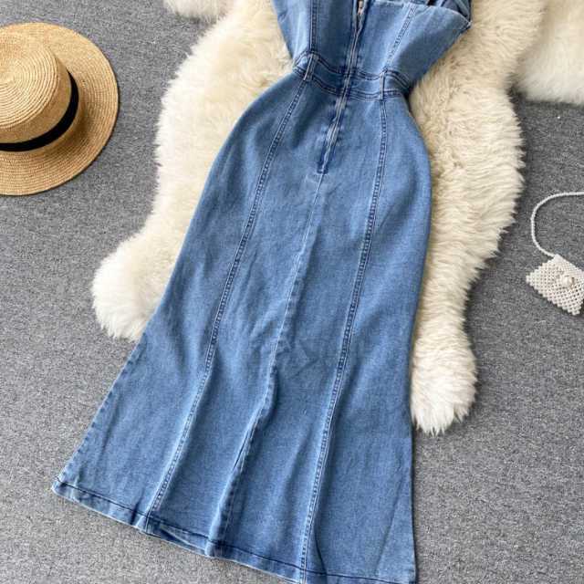 デニム デニムワンピース ロング マキシ ノースリーブ レディース マキシワンピース ロングワンピース キャミワンピ 大きいサイズ サロペット キレセク