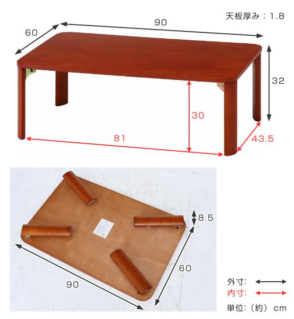 折れ脚テーブル 幅90cm 木製 ローテーブル ( 折りたたみ 折り畳み 天然木 折りたたみテーブル コンパクト 収納 座卓 折り畳みテーブル 省スペース リビング 和室 一人暮らし )