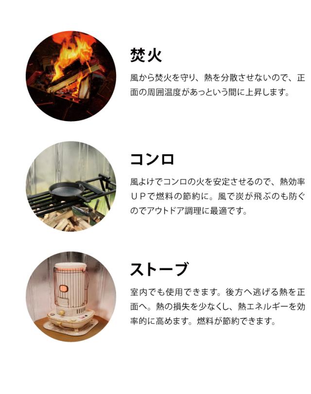 ウインドスクリーン 大型60×121.5cm 防風板 収納ケース付 ペグ付 風除板 反射板 リフレクター 焚き火 焚き火台 BBQ バーベキューコンロ アウトドア ソロキャンプ