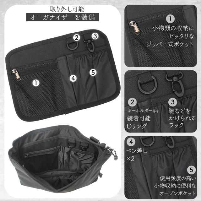 ショルダーベルトは簡単に取り外しが可能。シーンに合わせて活用できます。カラーは豊富な6色展開です。