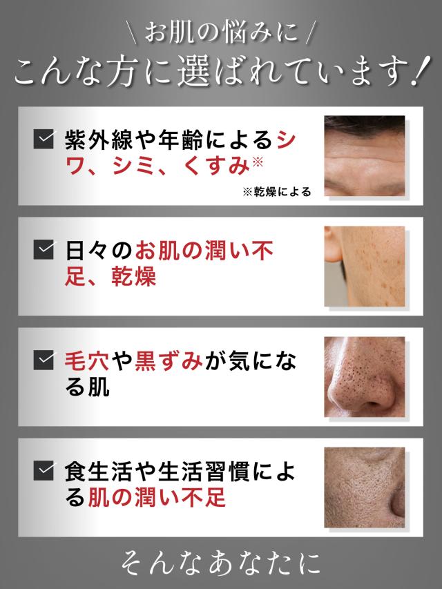 シワ改善、メラニンの生成を抑えシミ・くすみ・そばかすを防ぐ、保湿、肌荒れケア
