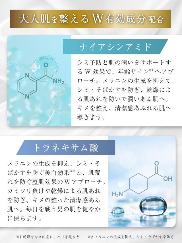 不要な成分を一切入れず仕上げた本格シワ改善・シミ予防メンズ美容液です。