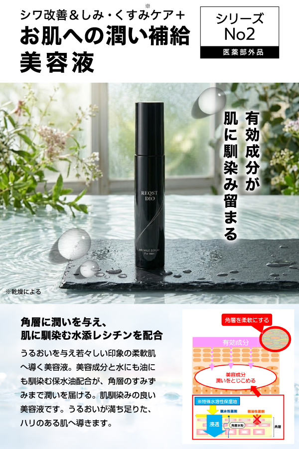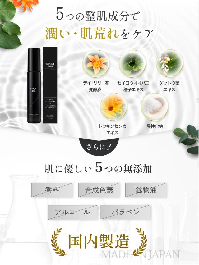 シワ改善 美容液 メンズ ナイアシンアミド トラネキサム酸 REQST DIO シミ くすみ 美白 (※乾燥による) スキンケア アフターシェーブ ローション (角質層まで) 【オールインワン 男性美容液 男性化粧品 メンズ化粧品】肌荒れ ハリ 女性 高保湿 48g 送料無料[医薬部外品]