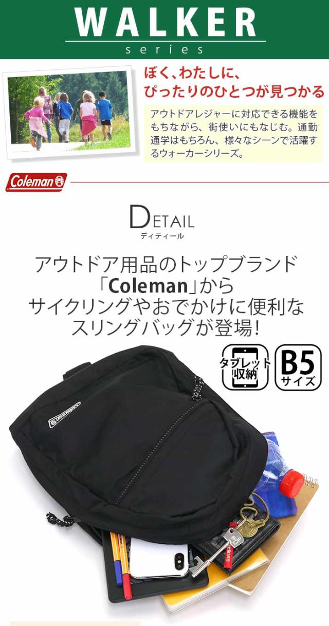ボディバッグ メンズ 6.5L Coleman コールマン 正規品 クロスボディ ワンショルダー バッグ B5 レディース 中学生 高校生 大学生 通勤 通学 黒 ファッション 斜め掛け 斜め掛けバッグ おしゃれ スポーツ 軽量 旅行 ウォーカー WALKER スリングバッグ