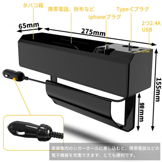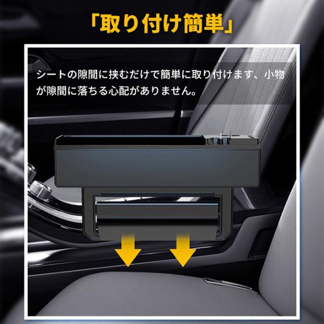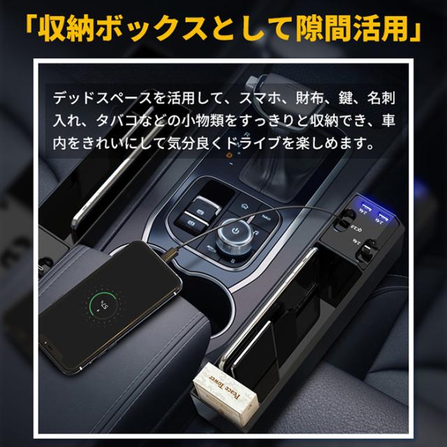 「クーポン配布中」「即納」車用収納ポケット 車隙間ポケット サイド収納ケース 車載充電 カーチャージャー 巻き取り 2本伸び縮み充電線付き 2つUSB充電ポート付き シガーソケット付き 多機能ギャップ収納 落下防止 スマホ充電 便利グッズ カー用品