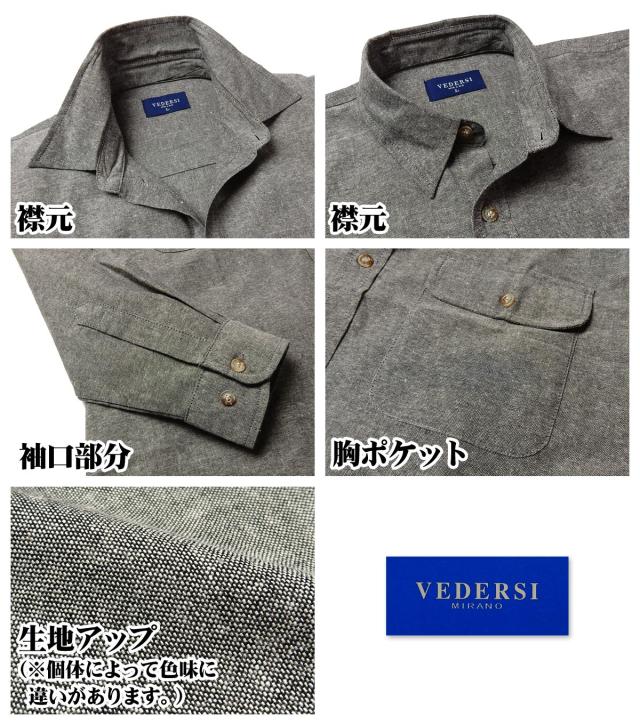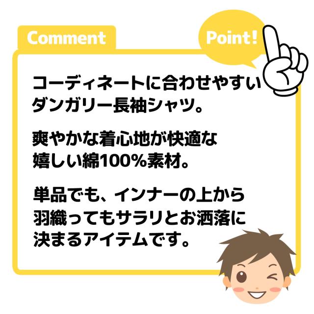 【送料無料】紳士 メンズ 綿100% 長袖 シャツ ダンガリー 無地 胸ポケット M L LL ys-0006c-bk【メール便対応】