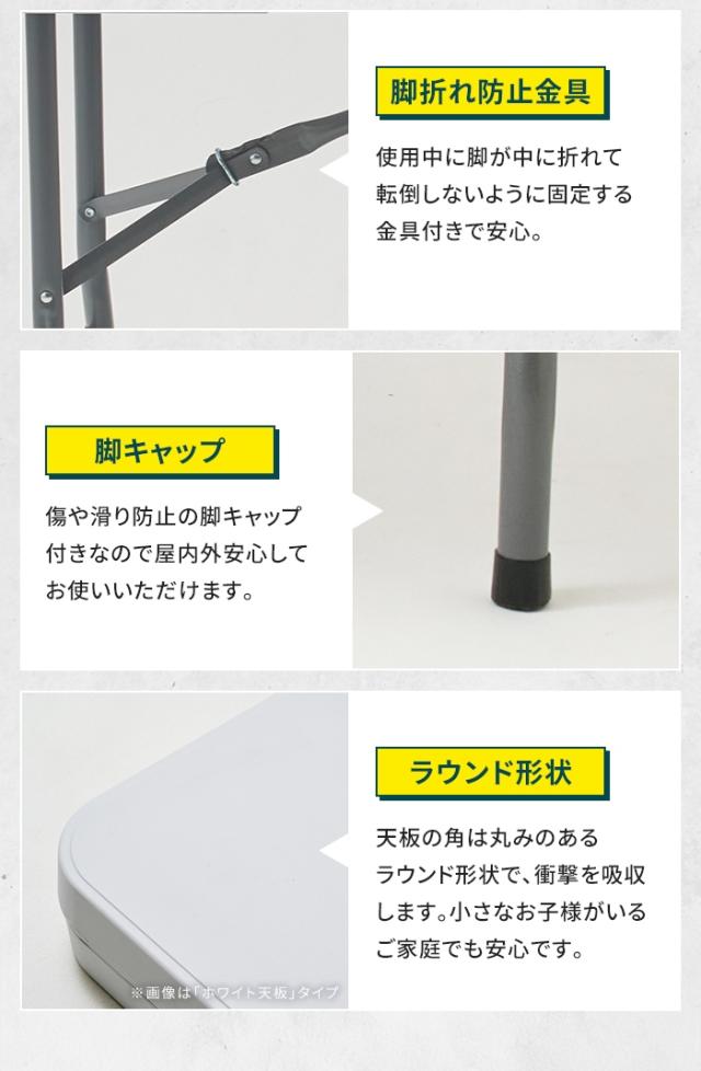 ・強化プラスチック(HDPE)天板で軽量かつ丈夫