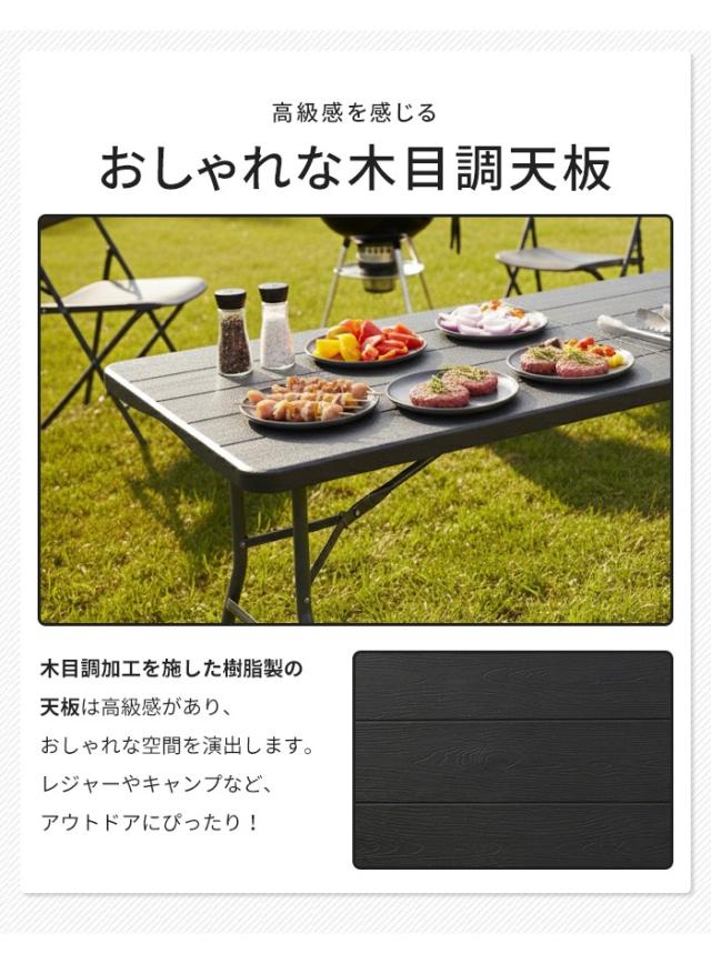【値下げ】 折りたたみテーブル 折りたたみ作業テーブル 180 幅180 奥行74 高さ73.5 木目調 ブラック/ダークブラウン 耐荷重100kg 強化プラスチック天板 折り畳みテーブル 軽量 作業テーブル 折りたたみ ワークテーブル アウトドアテーブル キャンプ テーブル バーベキュー