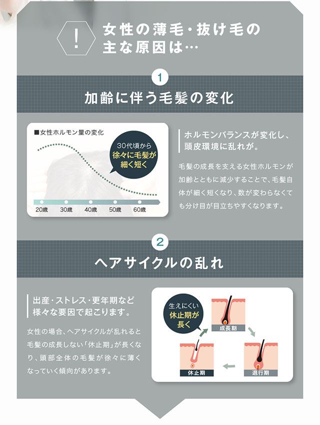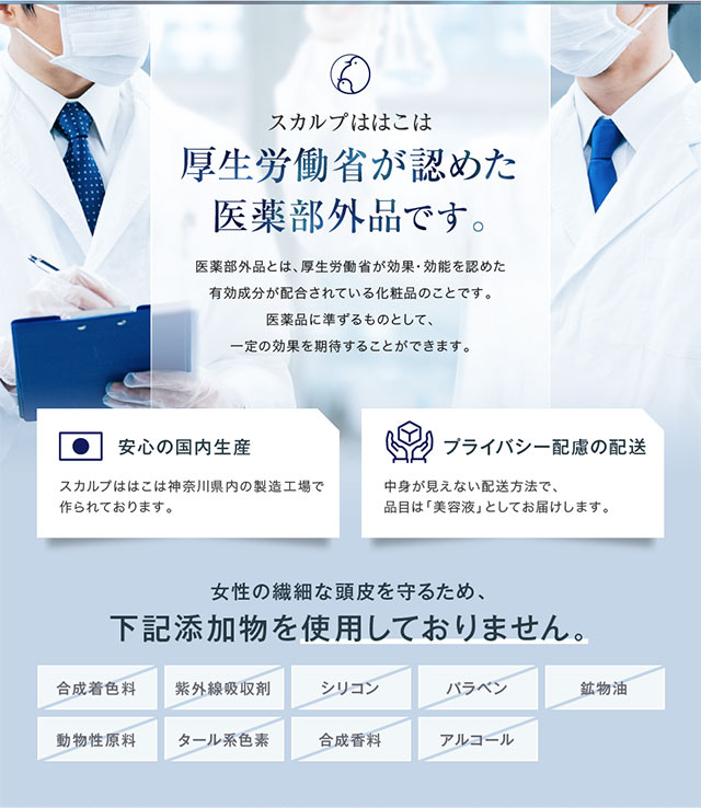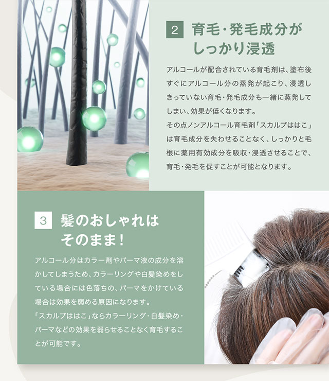 ・スカルプははこは女性の髪の「生える」と「守る」のダブル効能。