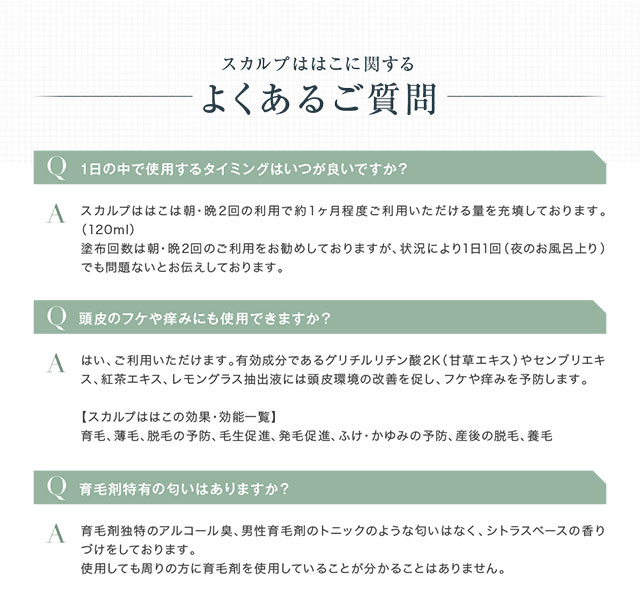 (スカルプははこの効果・効能一覧)育毛、薄毛、脱毛の予防、毛生促進、発毛促進、ふけ・かゆみの予防、産後の脱毛、養毛