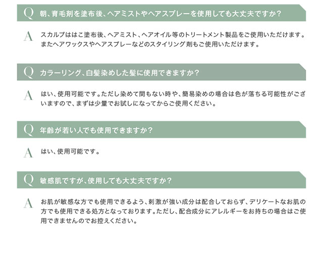 ・アルコール不使用なのでパーマ、カラー、白髪染めOK(ノンアルコール処方)