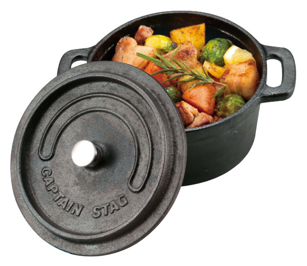 オーブン・煮る・蒸す・焼くの多彩な調理が可能な万能ココット鍋です。鋳物製で均一に熱を伝え、重厚なふたが旨みを閉じ込めて素材本来の味を引き出してくれます。アウトドアではもちろん、オーブンも使用可能なので、ご家庭でもご使用いただけます。