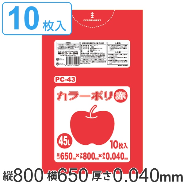 ポリ袋 45L 80x65cm 10枚入り レッド 厚さ 0.04mm ( ゴミ袋 45 リットル カラーポリ袋 つるつる 学校 工作 ゴミ ごみ ごみ袋 LLDPE キッチン 分別 袋 ふくろ やわらかい 伸びる 学芸会 文化祭 行事 保育園 小学校 掃除 清掃 ゴミ箱 )