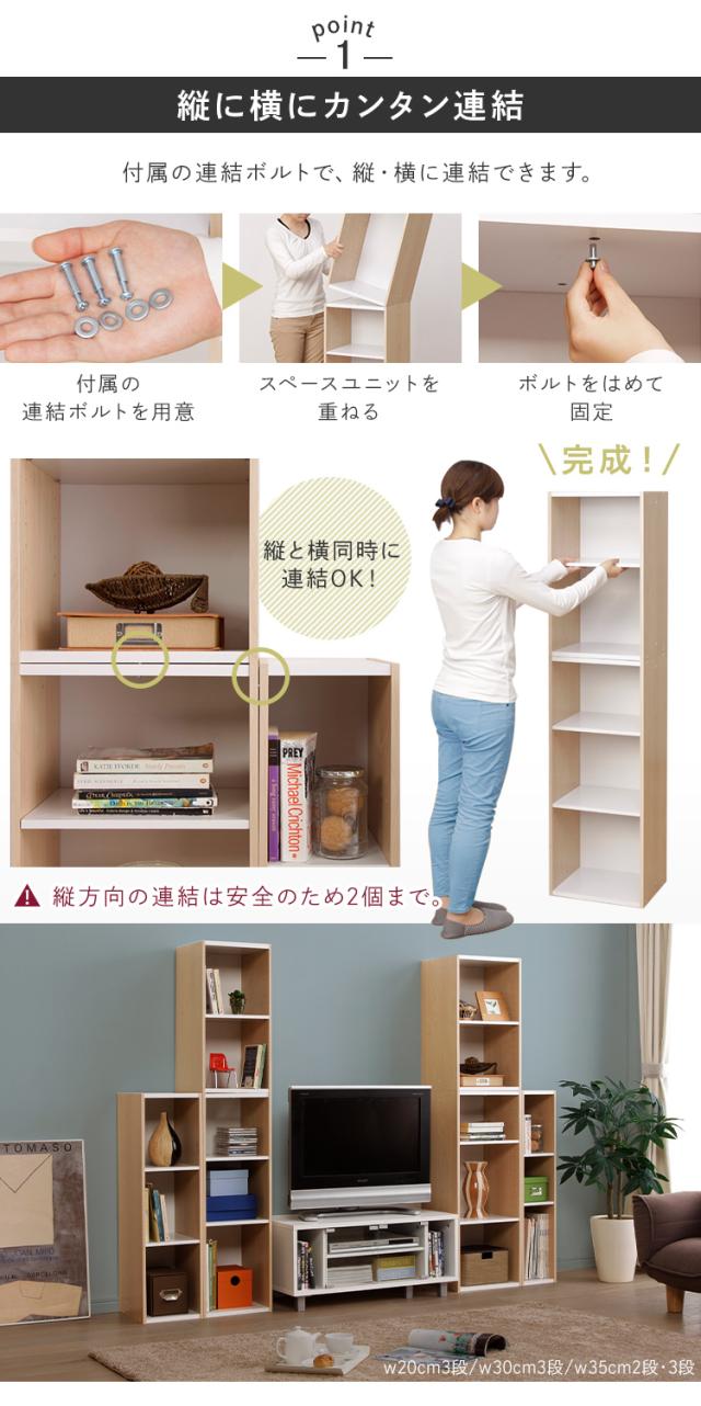 ※別売りのスペースユニット棚板 UBT-15で棚数を増やせます。