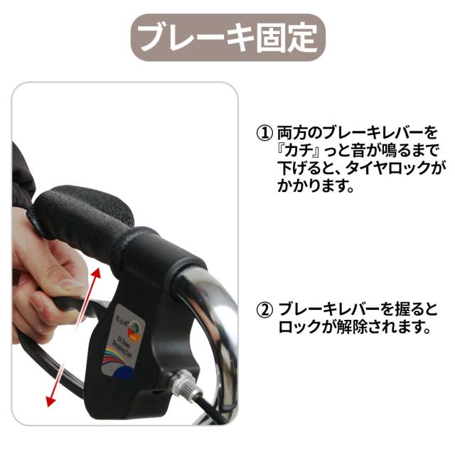 大きめのブレーキレバーで、両手でしっかりと握り込めるので握力が弱く、手の小さい方でも安心してご使用頂けます。