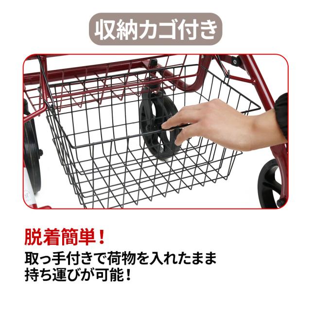 お散歩や、お買い物でも便利な収納かご付き、荷物や鞄、買い物袋を収納し楽に移動が可能です!