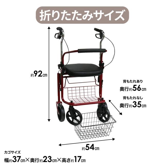 収納時サイズ:高さ約92cm×幅54cm×奥56cm(背もたれ無し幅約35cm)