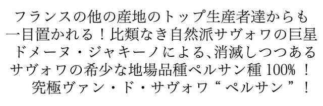フランスの他の産地のトップ生産者達からも一目置かれる!比類なき自然派サヴォワの巨星ドメーヌ・ジャキーノによる、消滅しつつあるサヴォワの希少な地場品種ペルサン種100%!
