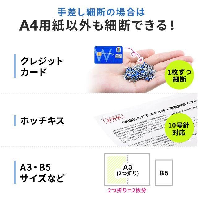 ●手差し細断も可能。カード類も細断できます。