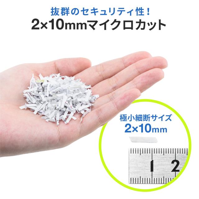 ●最大110枚のA4用紙を自動細断できるオートフィードシュレッダーです。●細断くずが小さくセキュリティ性が高い2×10mmのマイクロカットです。