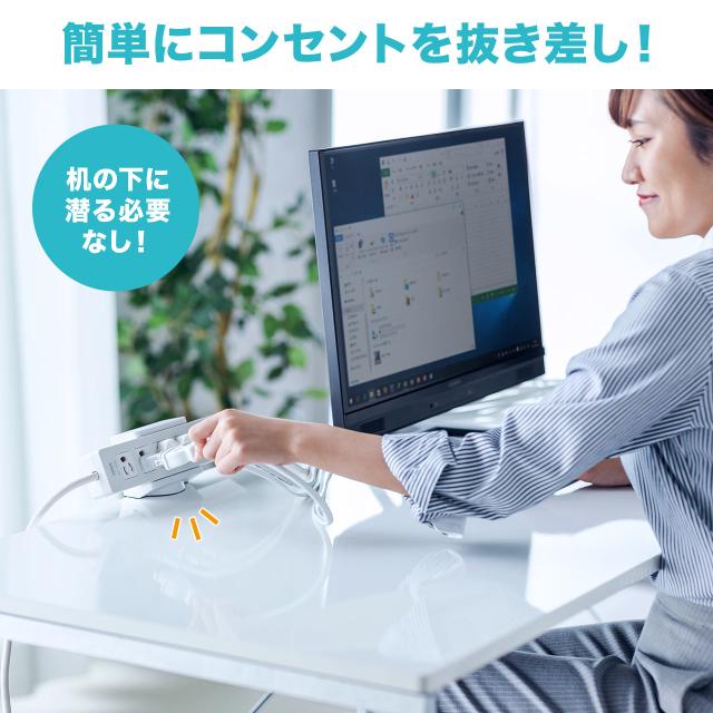 ●電源タップをデスクの天板に固定できる電源タップホルダーです。●電源プラグを手元で抜き差しできるようになります。