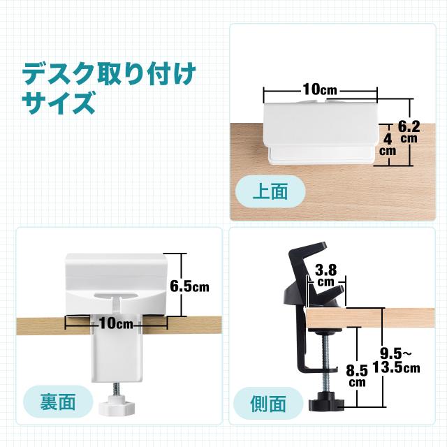 ■対応天板厚み:10mm〜55mmまで■挟み込み対応機器:幅40〜52mmまでの電源タップ