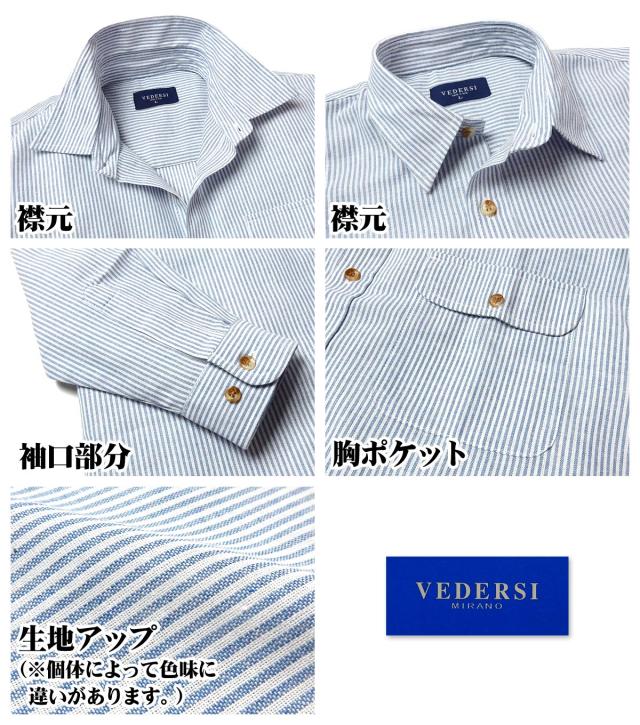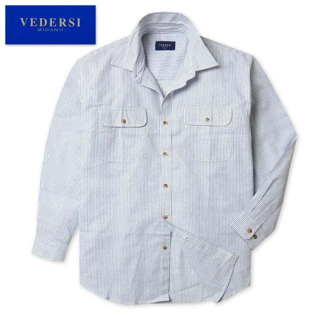 【送料無料】紳士 メンズ 綿100% 長袖 シャツ ヒッコリー柄 ストライプ 胸ポケット M L LL ys-0010a-bl【メール便対応】
