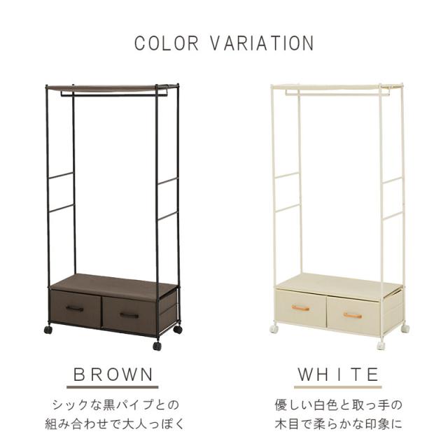 HANGER RACK ハンガーラック (ハンガー ラック 引き出し 収納 木製取っ手 シンプル モダン シック 上下棚 サイドバー S字フック ハンガーポール キャスター ブラウン ホワイト おしゃれ おすすめ)