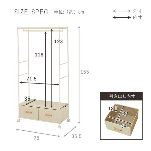 | サイズ | (約)幅75×奥行35.5×高さ155cm |