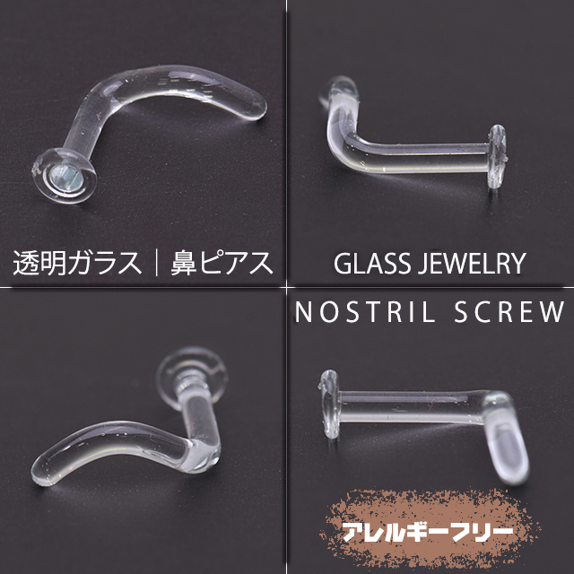 透明ピアス ガラスピアス 鼻ピアス 12G 10G 目立たない シークレットピアス ノーズスクリュー 透ピ ボディピアス ファーストピアス つけっぱなし