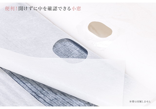 材質は最高級和紙を使用し、上部には透明の窓が有り、中の帯が分かるようになっています。