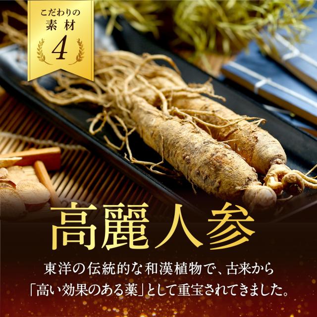 原材料:ゼラチン(国内製造)、ノコギリヤシエキス、オリーブオイル、黒大豆種皮抽出物、高麗人参抽出物、カキ肉抽出物、ヤマイモ抽出物、トチュウ葉抽出物/グリセリン、グリセリン脂肪酸エステル、ミツロウ、(一部に大豆・ゼラチン・やまいもを含む)