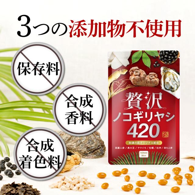 ノコギリヤシ サプリメント 贅沢ノコギリヤシ420 60粒入り 和漢の森 高麗人参 杜仲 ヤマイモ 黒大豆配合 田七人参 クレアチニン 男性 サプリ