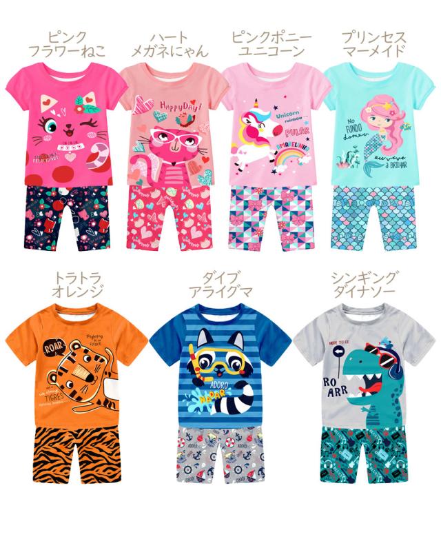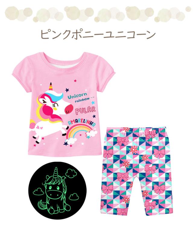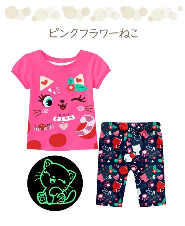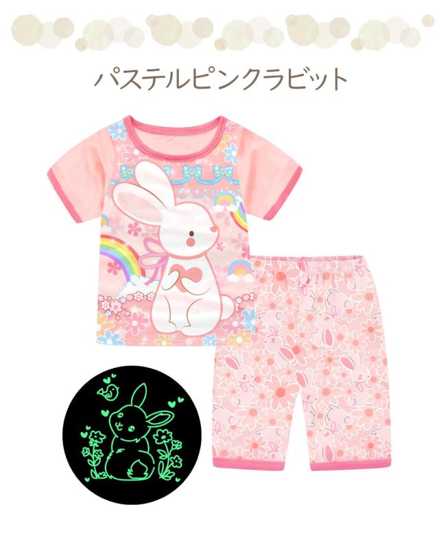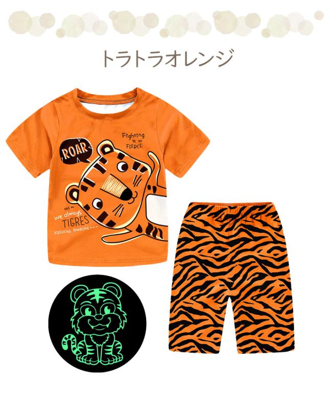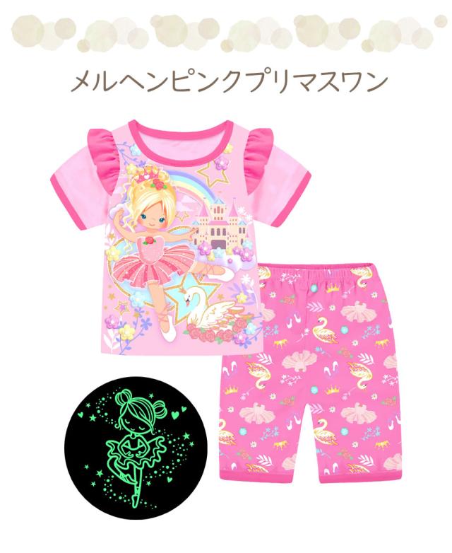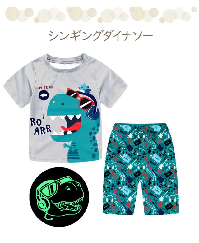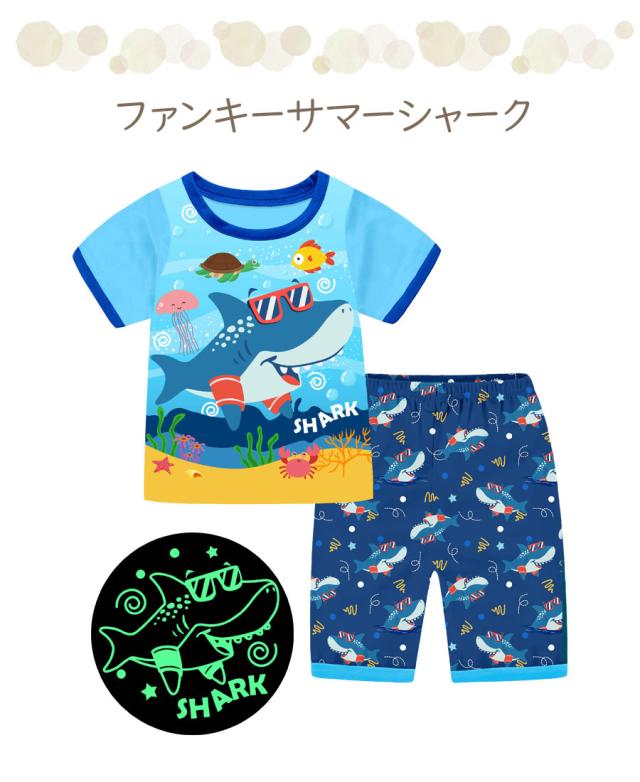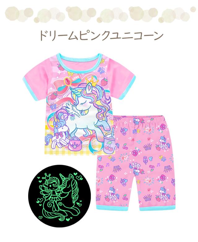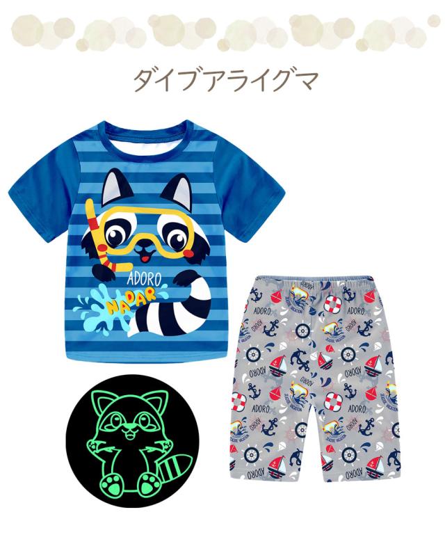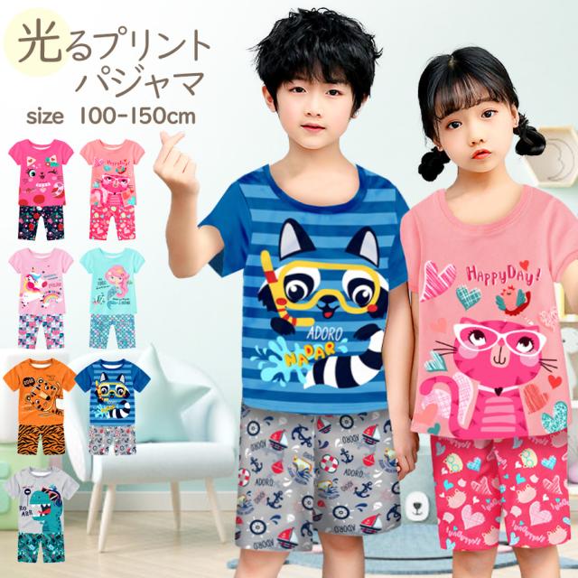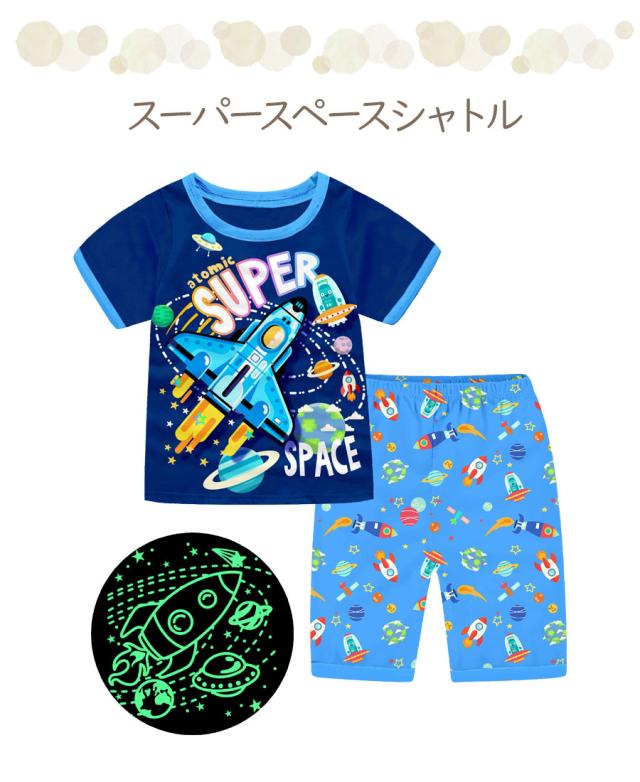 光る プリント パジャマ ひんやり 子供服 春 夏 綿 半袖 男の子 女の子 セパレート キッズ ジュニア 100 110 120 130 140 150 メール便