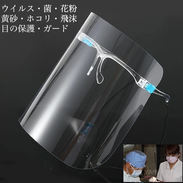 1 フェイスシールド メガネ サングラス 医療用メガネ ガード 大人用 接客業 飛沫防止 男女兼用 メガネ併用可 花粉症 透明フレーム ウィルス対策 ロング