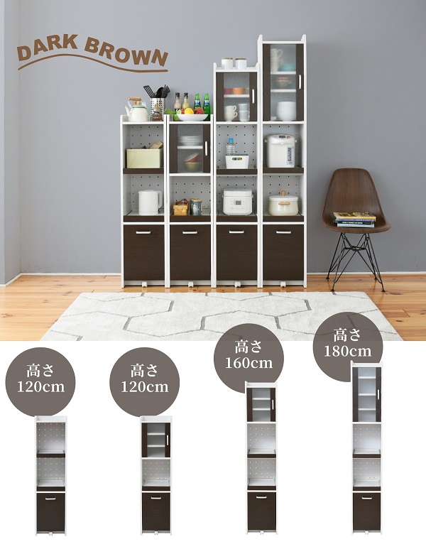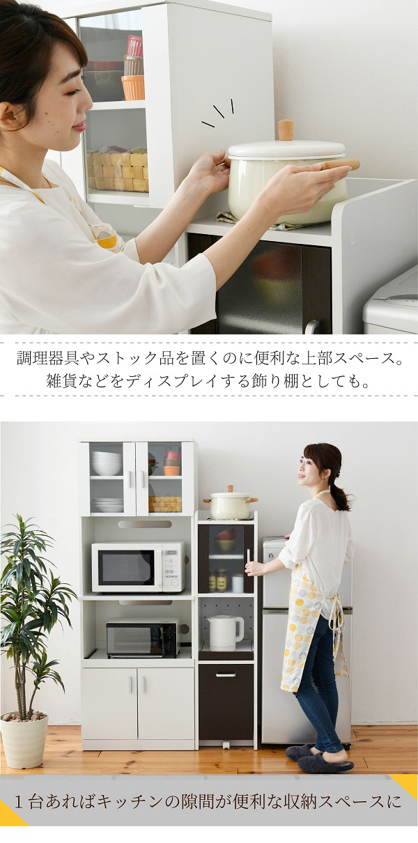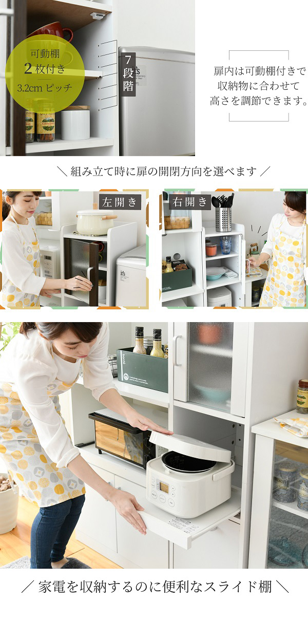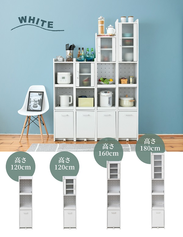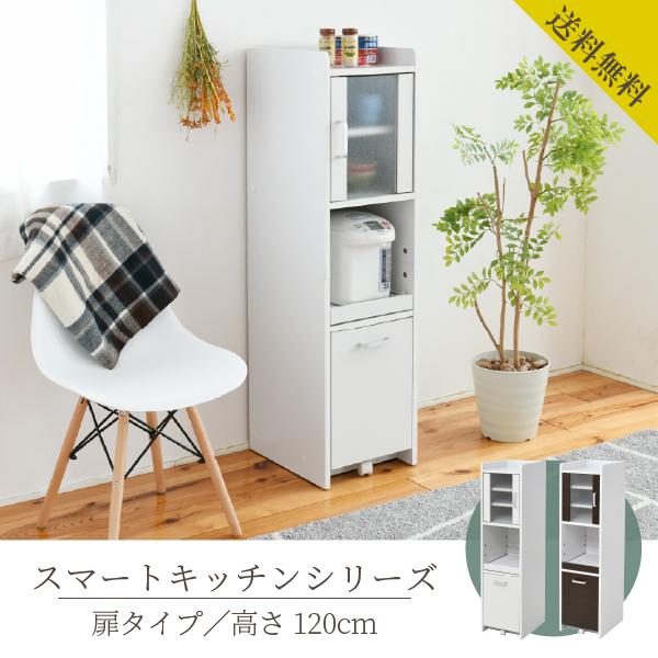 【スライド棚・コンセント付き】スマートキッチンシリーズ 扉タイプ H124cm FKC-0645 2色対応 収納 キッチン 台所 ラック 棚 食器 キッチンラック おしゃれ モダン 木製 キャビネット ストック ストック収納 収納家具