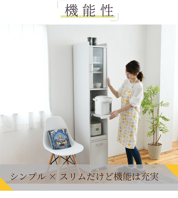 【スライド棚・コンセント付き】スマートキッチンシリーズ 家電ラック H181cm FKC-1533 2色対応 収納 キッチン 台所 ラック 棚 食器 キッチンラック ハイタイプ おしゃれ モダン 木製 キャビネット ストック ストック収納 収納家具