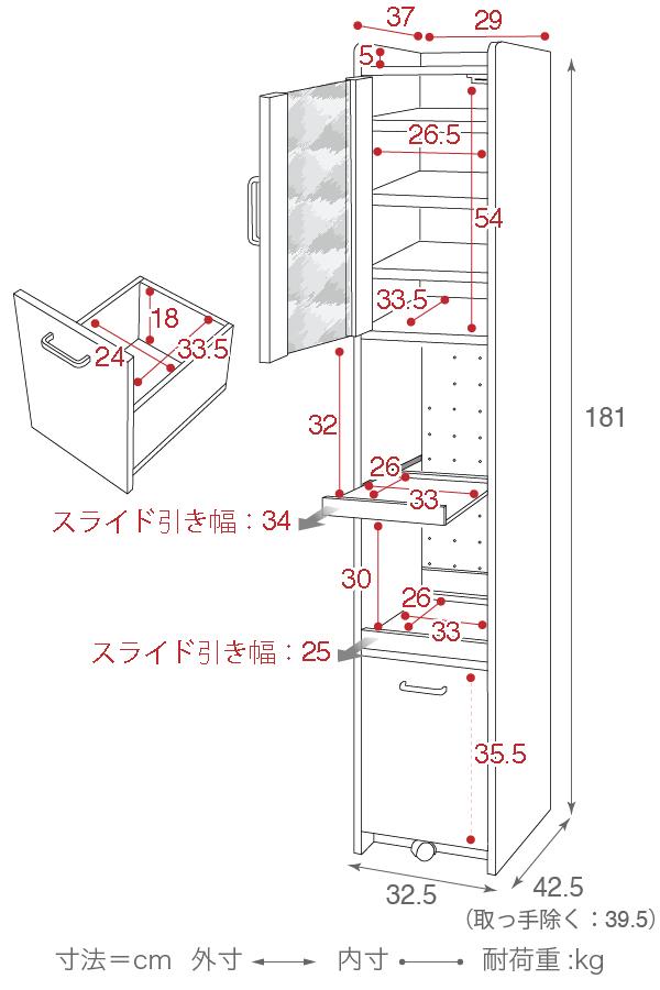 全体:W32.5 x D42.5 x H181cm