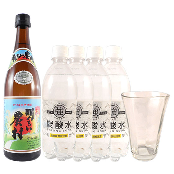 強炭酸水で割る! 芋焼酎 明るい農村 ソーダ割りセット(明るい農村720ml・グラス1個・強炭酸水4本)