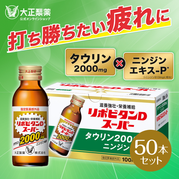 【レビューでポイント5%】【公式】大正製薬 リポビタンDスーパー タウリン 人参 ビタミンE ビタミンB群 無水カフェイン 100ml 50本 指定医薬部外品 栄養ドリンク 肉体疲労
