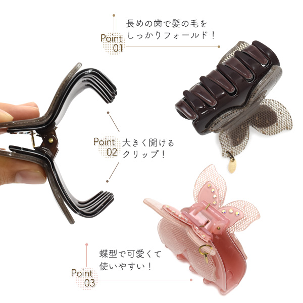 大きく開ける長め歯のクリップでヘアスタイルをしっかりキープしてくれます。