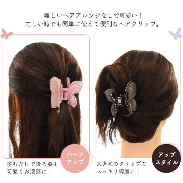 挟むだけで簡単ヘアアレンジができる蝶モチーフのヘアクリップです。