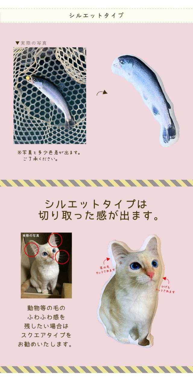 形が異なる為、シルエットの場合違うお写真で裏表は作成出来かねます。 裏表違うお写真で作成をご希望の場合はスクエアでご注文をお願い致します。 |