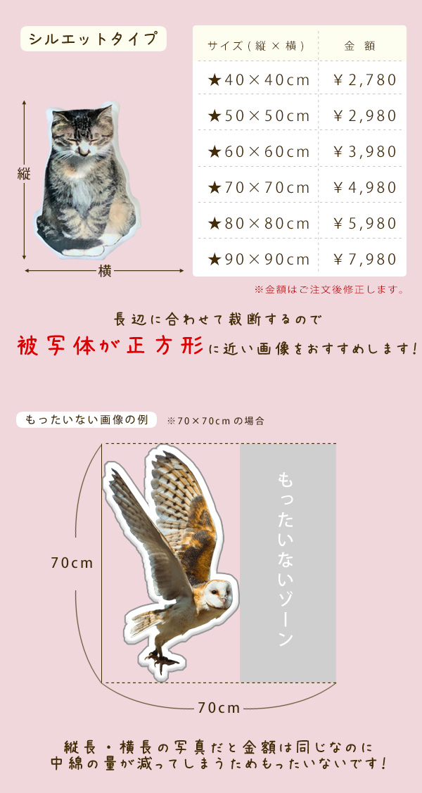 オリジナル オーダーメイドクッション ☆ シルエット 50×50 オーダー クッション 犬 猫 写真入り メモリアル オーダークッション ペット イヌ ネコ 記念品 思い出 ふわふわ 受注生産
