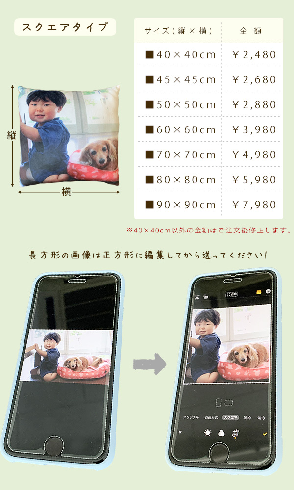 ■お送りいただいたお写真と完成したクッションのイメージが多少色差が異なる場合がございます。予めご了承ください。