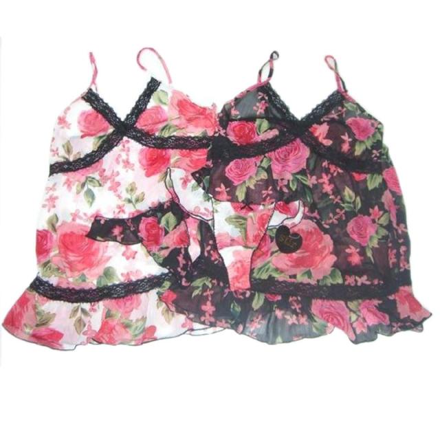 キャミ Tバック ショーツ セット キャミソール シフォン バラ柄 花柄 M L ベビードール ランジェリー レディース 女性 下着 部屋着 ルームウェア メール便送料無料