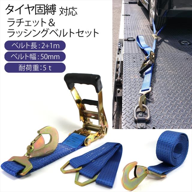 積載車用 タイヤ固縛 対応 ラッシングベルト ブルー ラチェット ベルト セット スナップフック ツイストタイプ ラチェット式 ベルト幅 50mm 3m タイヤ固縛用 締ベルト 積車 車両固定 簡単 丈夫 【宅配便のみ】